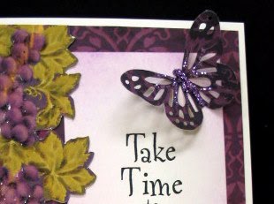 The addition of MS butterflies, a SU grommet w/ribbon and Wild Orchid flowers turned this plain black box into a beautiful trinket box!