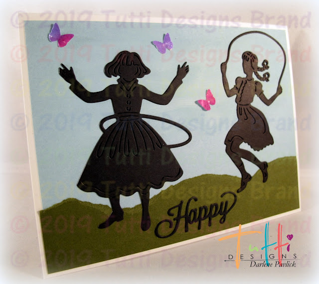 Digging into my dies I've used a Memory Box House and Impressions Obsession Fences. The sentiment is a die set by Frantic Stamper and the blue bird is an old Martha Stewart punch.