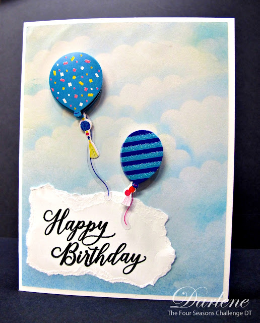 DeleteBeautiful balloons in a summer sky - up, up and away (can you hear me singing??). Great card for our final Summer challenge.